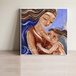 Choose a print or original painting for a mother raising a family of girls. Having loving and warm art in her home will inspire peace and comfort. Select Embellished Prints and I can change hair or eye colors per your request.