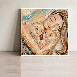 Prints from paintings of Mom with her children . Babywearing and breastfeeding moments captured in paint on canvas or prints on paper or canvas. Select Embellished Prints and I can change hair or eye colors per your request.