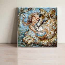 - Love Despite Flaws - Little Girl and Lion Art Print(2)
