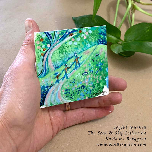 An original 3x3 inch mini collector’s painting, hand-painted onto 246 lb acid-free watercolor paper, with a beautiful woven texture.