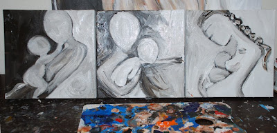 One celebrating the first moments after birth (far right), working title “new world”. One of a sweet chubby child feeding his mama, working title “bread”. One dealing with letting a young one become a more-grown-up one (center).