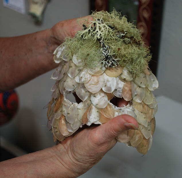 I very much valued the time Audrey spent sharing her books with me, and she also shared her masks. The Broadway Gallery is currently having a display of artist-made masks, and Audrey’s mask won first place.