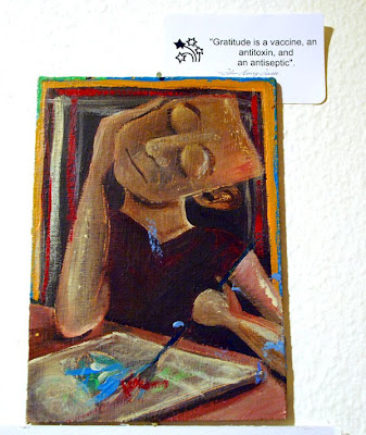 Above image: Humble Beginnings; hanging in my current studio – with a card that says: