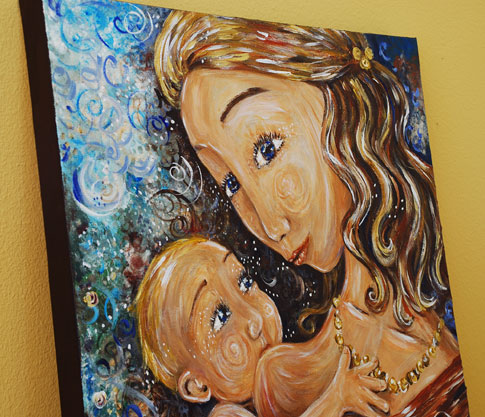 I recently learned about necklaces specially created for babies to play with while nursing, and from the beginning, I knew I wanted to feature one in this painting.