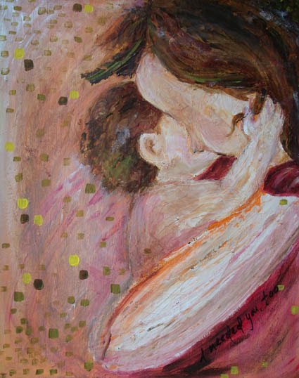 One evening my baby boy called to me and as if I’d been waiting, I ran to him and we meshed. This painting was born the next day – I Needed You, Too.