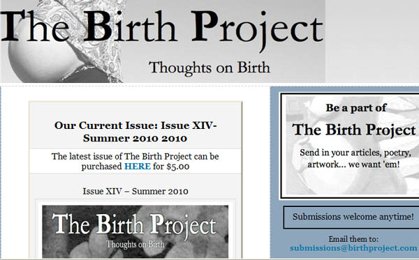 A self-published magazine that strives to normalize pregnancy, birth, and the entire “childbearing year.” Through too-often traumatic depictions in popular culture, birth has been turned into something that scares many. We often forget that we ALL have in fact participated in the birth process, simply by being born… not to mention the fact that women have been giving birth to babies throughout the entire history of humanity. read more at The Birth Project’s website