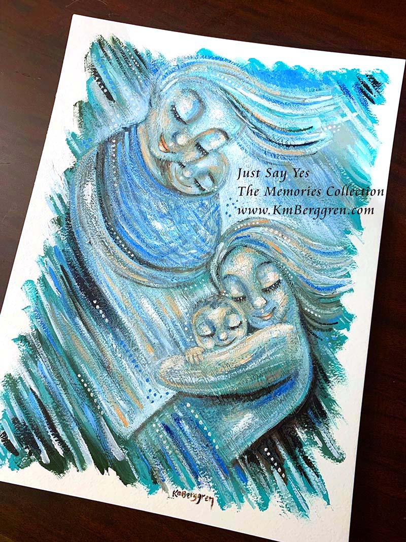 These glimpses move in and out from the shadows, reminding us to slow down and feel the present. Some Memories paintings show two scenes, months or years apart, and some celebrate two instances from the same moment.