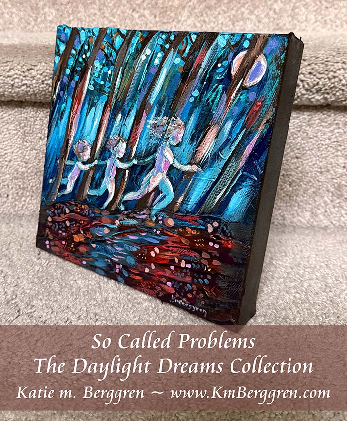 ►ONE AVAILABLE◄ So Called Problems - Original 8x8 Mom and 2 Kids Running Through Forest Painting